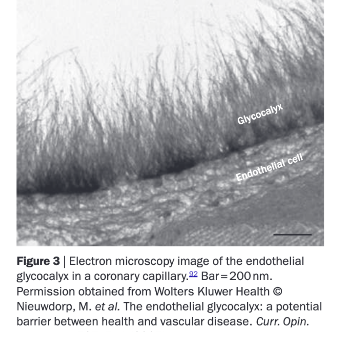 The glycocalyx, a microscopic layer lining the inside of all blood vessels, and vital to protecting that lining.